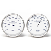 High-quality sauna instruments set for the perfect temperature and humidity measurement in the sauna. Highclass synthetic hair hygrometer to measure humidity in the sauna.