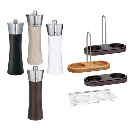 Zassenhaus Juego de molinillo de sal y pimienta FRANKFURT con posavasos, madera de olivo Juego de molinillos de pimienta y sal de alta calidad. Col...