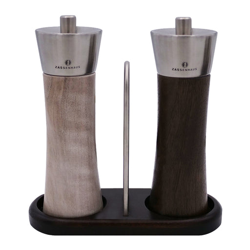 Zassenhaus Juego de molinillo de sal y pimienta FRANKFURT con posavasos, madera de olivo