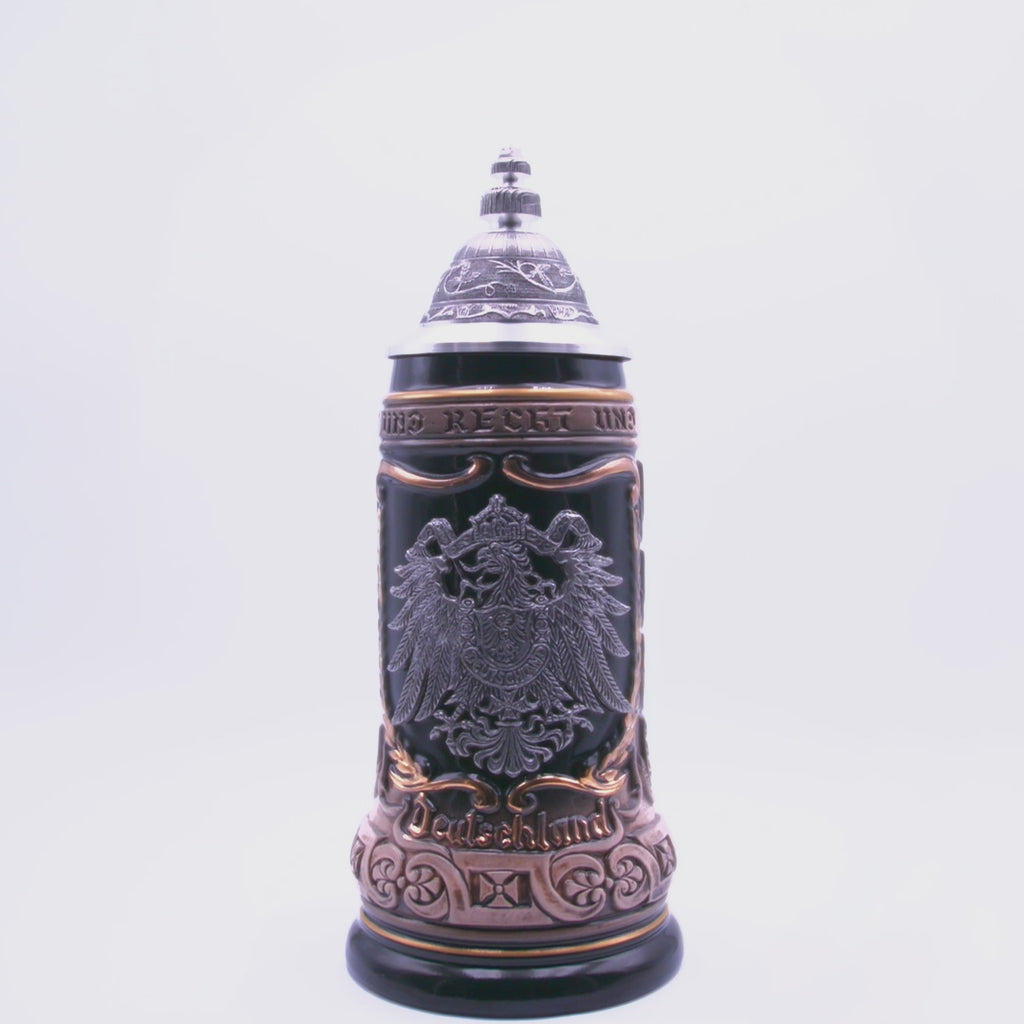 Aporta un toque de tradición alemana a tu hogar con esta impresionante jarra de cerveza. Ya seas un coleccionista, un amante del patrimonio alemán, o simplemente alguien que disfruta de la artesanía de alta calidad, esta jarra de cerveza con el alivio de águila es es perfecto para brindar o como pieza de exhibición.