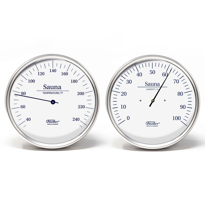 Termómetro + Higrómetro de Sauna Fischer, Acero Inoxidable (Versión EE. UU. °F)