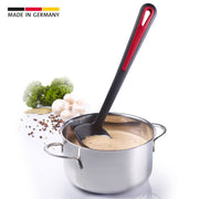 高品質のポリアミドで作られており、210°C / 410°Fまでの耐熱性があります。ノンスティック調理器具に特に優しいです。赤いインレイ付きの快適なソフトタッチハンドルは、しっかりとした快適なグリップを保証します。BPAフリーで、食器洗い機対応、そして統合された吊り下げループで簡単に収納できます。