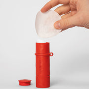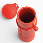 A soft, food-grade silicone lid seals the integrated mini storage capsule. The silicone is flexible, durable, and safe for food contact. The construction is minimal, functional, and optimized for repeated installation and removal without compromising structural integrity.