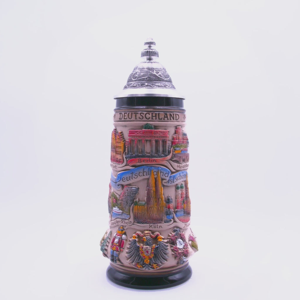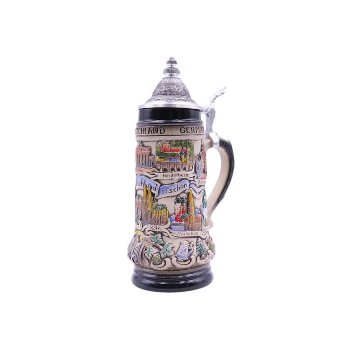 Jarra de Cerveza Alemana PANORAMA ALEMANIA, Tapa de Peltre Especial (ZSD)