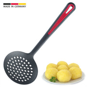Made from high-quality polyamide, the skimmer is heat-resistant up to 210 °C / 410 °F and safe to use with non-stick cookware. The comfort soft-touch handle with red inlay ensures a secure and pleasant grip. BPA-free, dishwasher safe, and space-saving thanks to the integrated hanging loop.