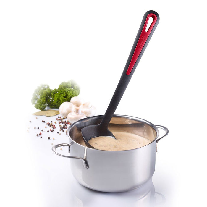 Made from high-quality, glass-fiber-reinforced PPA, the ladle is heat-resistant up to 270 °C and safe to use with non-stick cookware. The ergonomic comfort soft-touch handle with red inlay ensures a secure and comfortable grip. BPA-free, dishwasher safe, and easy to store thanks to the integrated hanging loop.